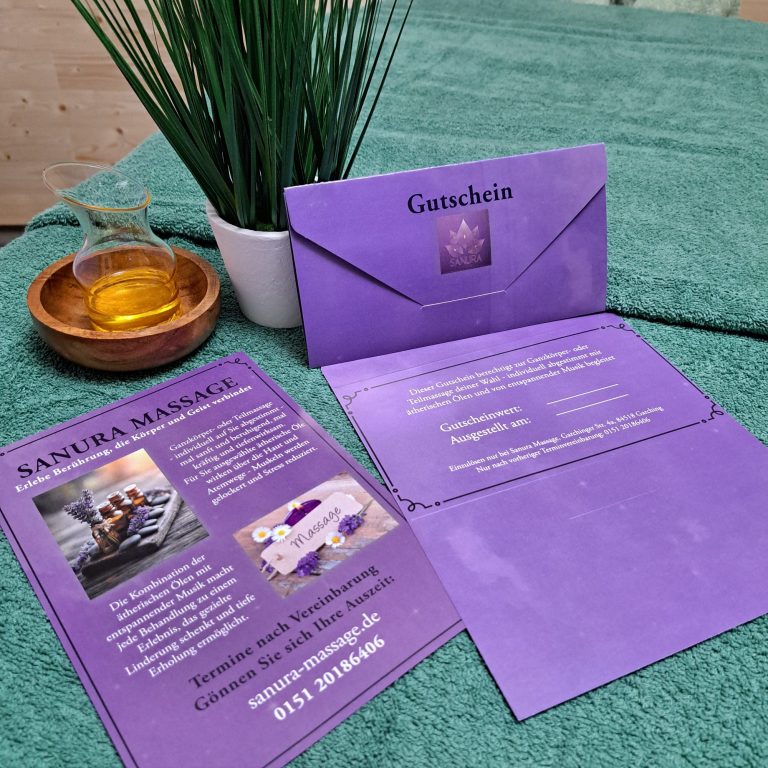 Bei Sanura steht dein Wohlbefinden im Mittelpunkt. Ich biete individuell angepasste Wellnessmassagen an, die Körper und Geist in Einklang bringen – mal sanft und beruhigend, mal kraftvoll und tief lösend.